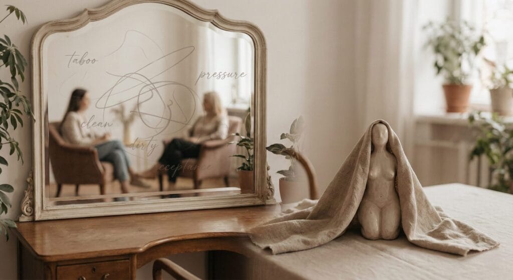 These are not superficial concerns. They’re reflections of how we’ve been conditioned to disconnect from our bodies. Words like clean and dirty get tangled in our erotic language, shaping how we feel about pleasure, touch, and intimacy.